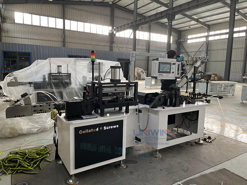 Bu Harmanlanmış Vida Montaj Makinesi Alçıpan vidalarını dakikada 600-1200 adet hızla plastik kayışlara monte etmek için tasarlanmıştır ve alçıpan vidalarını ve diğer malzemeleri sabitleme işlemini kolaylaştırır. Kayış başına 50 vida monte edilir ve her bir kayışı iki taraftan bağlamak için 2 delik bulunur.